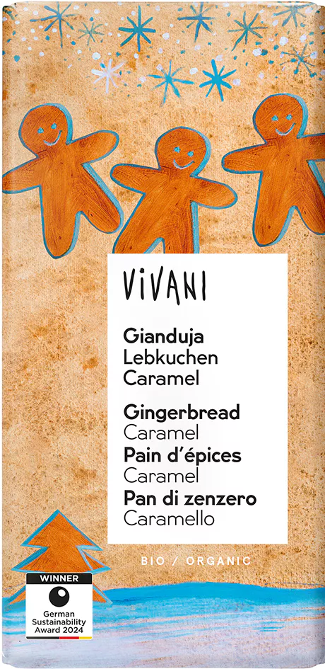 Popis produktu Vivani Mléčná čokoláda nugátová perník-karamel 100 g BIO